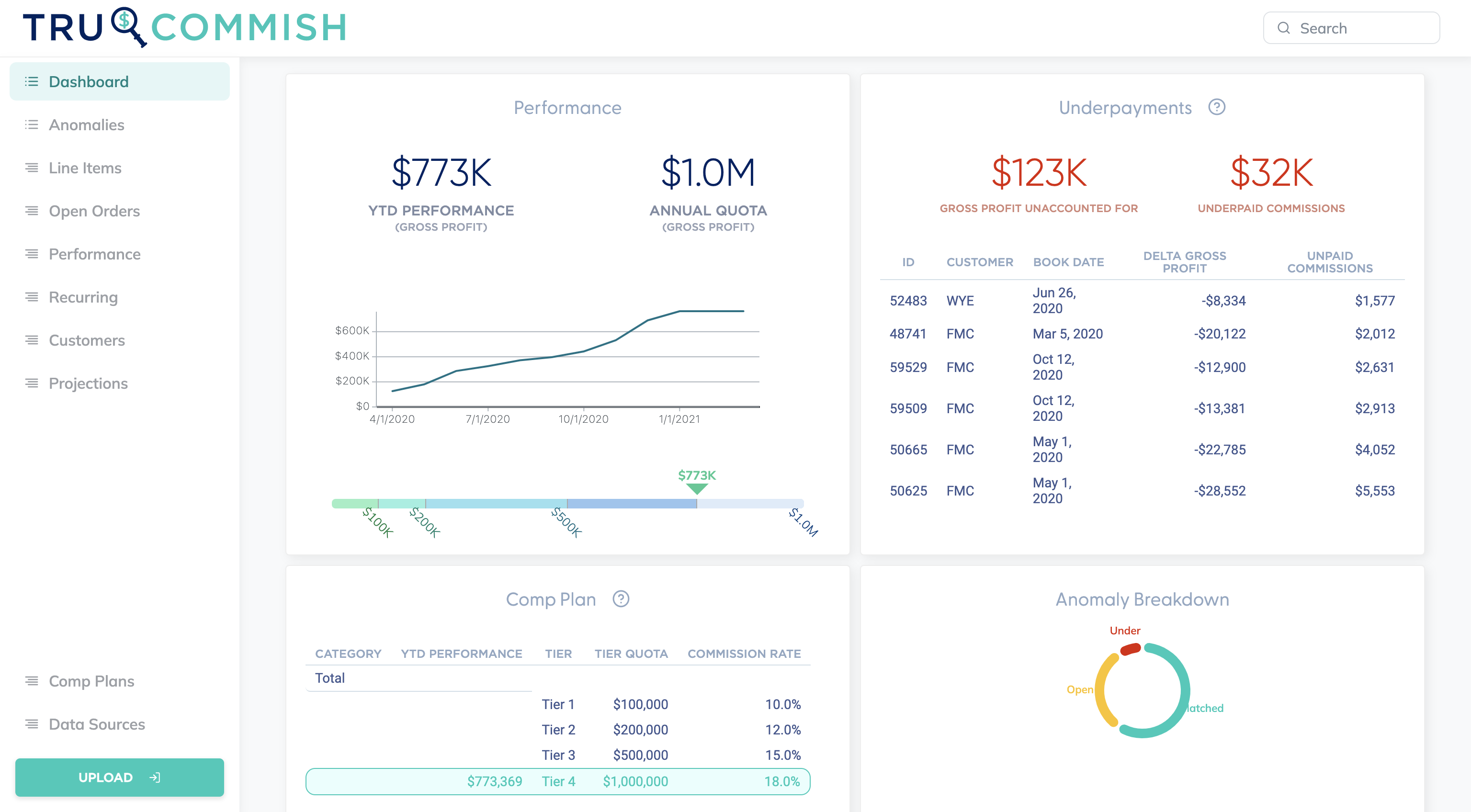 TruCommish is the first solution designed specifically for individual salespeople, providing unique insights into their earnings and performance which are not available in existing enterprise tools.